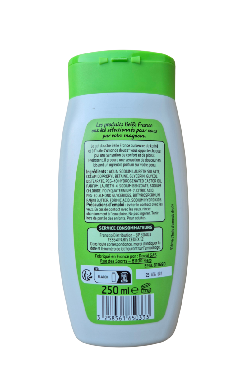 Gel douche à l'amande douce, au beurre de karité, 250 ml. 2,70 euros.